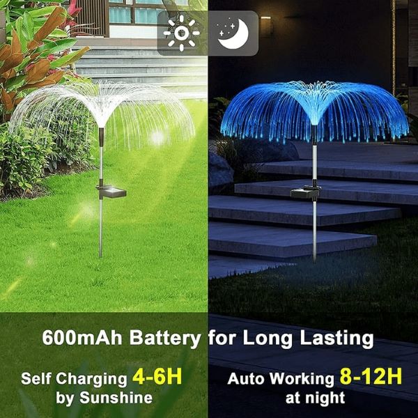 Ces lumières sont très faciles à installer et sont livrées avec tout ce dont vous avez besoin dans un seul paquet. Aucun outil supplémentaire n’est nécessaire pour l’installation. Il vous suffit de les placer dans un endroit où elles peuvent recevoir suffisamment de lumière du soleil pendant la journée. Une fois installées, il suffit d’activer le bouton d’alimentation pour qu’elles commencent à se charger. Elles s’allument automatiquement la nuit et changent de couleur, puis s’éteignent le jour. En moyenne, elles nécessitent jusqu’à 6 heures d’ensoleillement pour se charger complètement et peuvent fournir 8 à 12 heures de lumière la nuit. Cela signifie qu’elles utilisent très efficacement l’énergie qu’elles reçoivent, ce qui en fait un complément idéal pour votre maison.