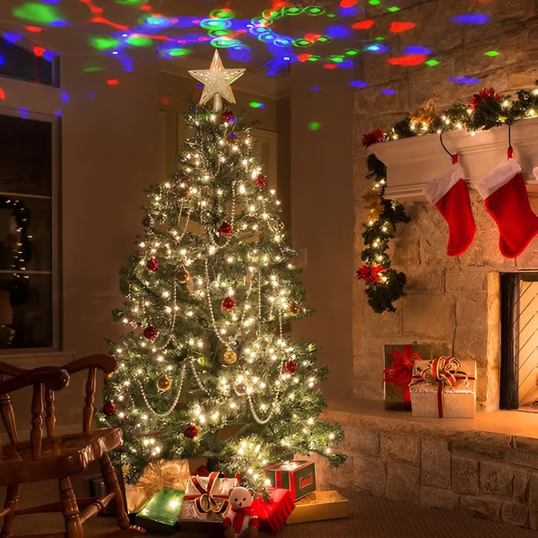 Crée une atmosphère féerique grâce à des projections 3D animées qui dansent au-dessus de votre sapin.